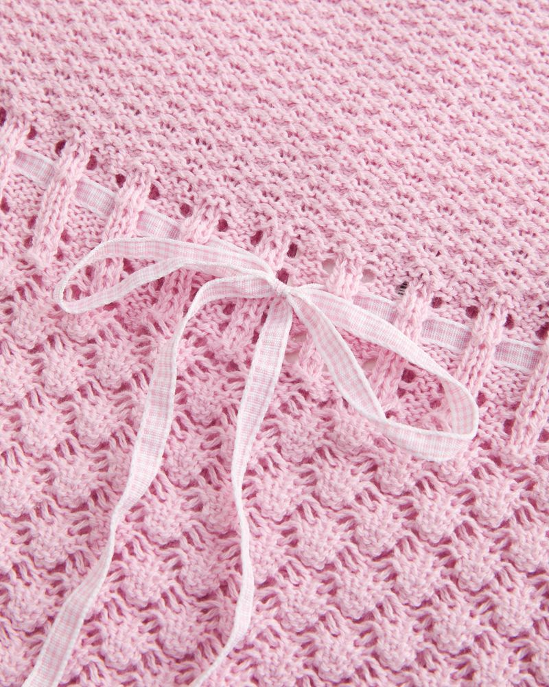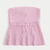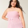 Cozy and super soft, this tube top features crochet-style patterns and a tie detail through the waist. Strapless. Imported.