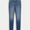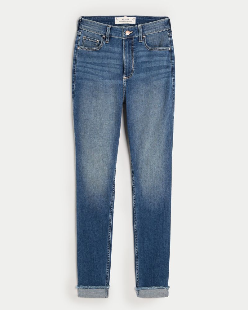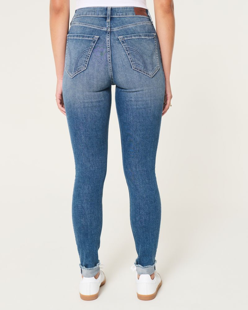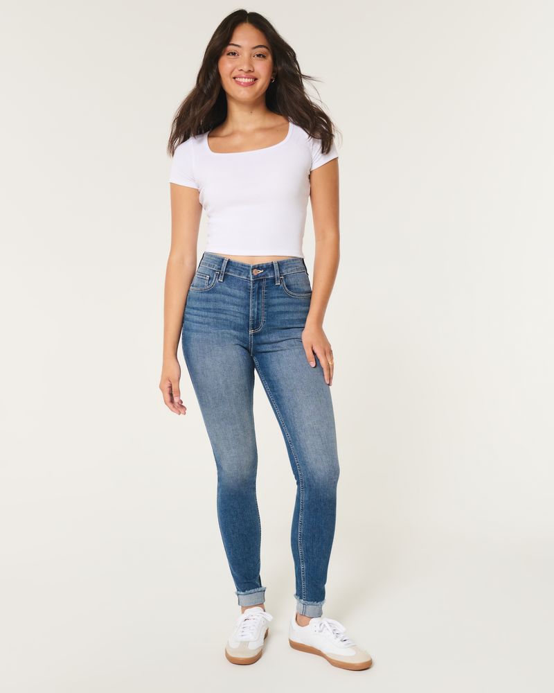 Designed in our signature slim fit, these medium wash super skinny jeans feature fading and whiskering. Curvy high-rise waist, cuffed hems, stretch. Imported.