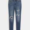 Designed in our signature slim fit with our super skinny leg opening, these classic, wear-everywhere jeans are made with a flattering high-rise waist and dark wash. Ripped detailing. Imported.