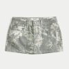 A cute denim mini skort designed with a flattering curvy low-rise waist. Hidden knit shorts, camo pattern. Imported.