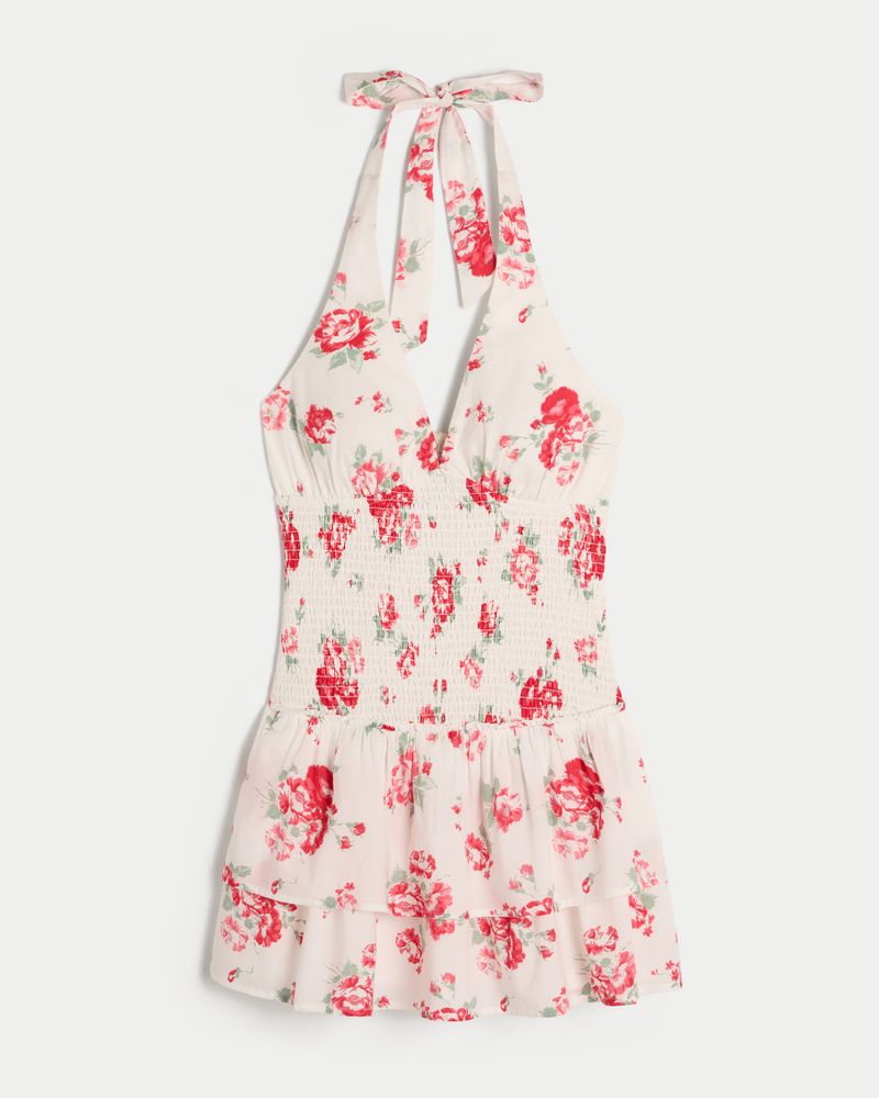A cute and super soft skort dress with a flowy double-tier hem and halter ties. Soft smocked waist. Imported.
