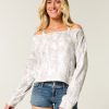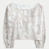 A super soft fleece sweatshirt featuring an all-over camo pattern and relaxed neckline that’s worn off both shoulders. Long sleeves. Easy Fit. Imported.