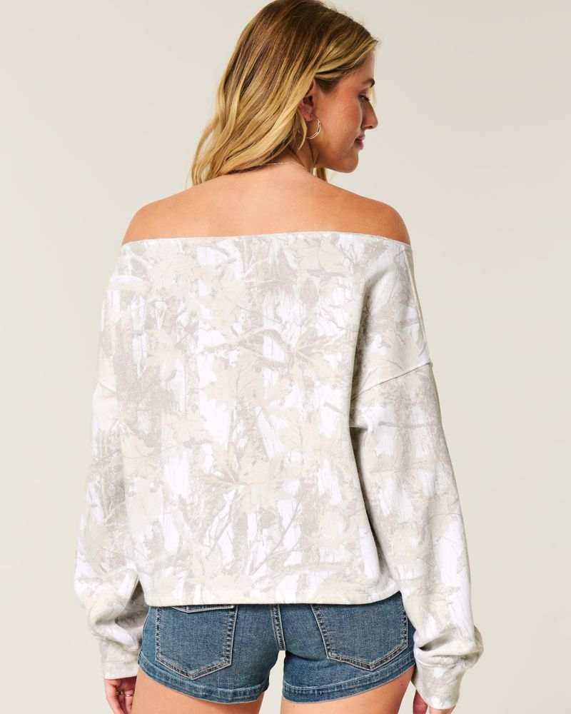 Easy Double Off-the-Shoulder Camo Sweatshirt