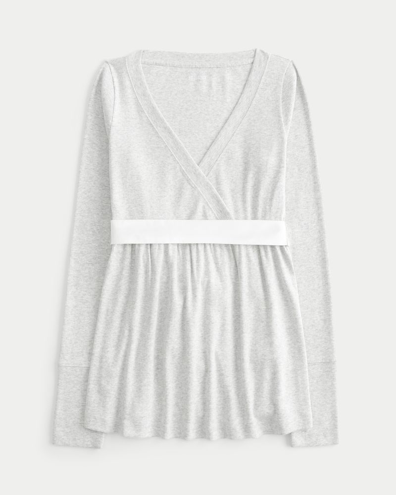 Easy Long-Sleeve Wrap-Front Babydoll Top