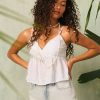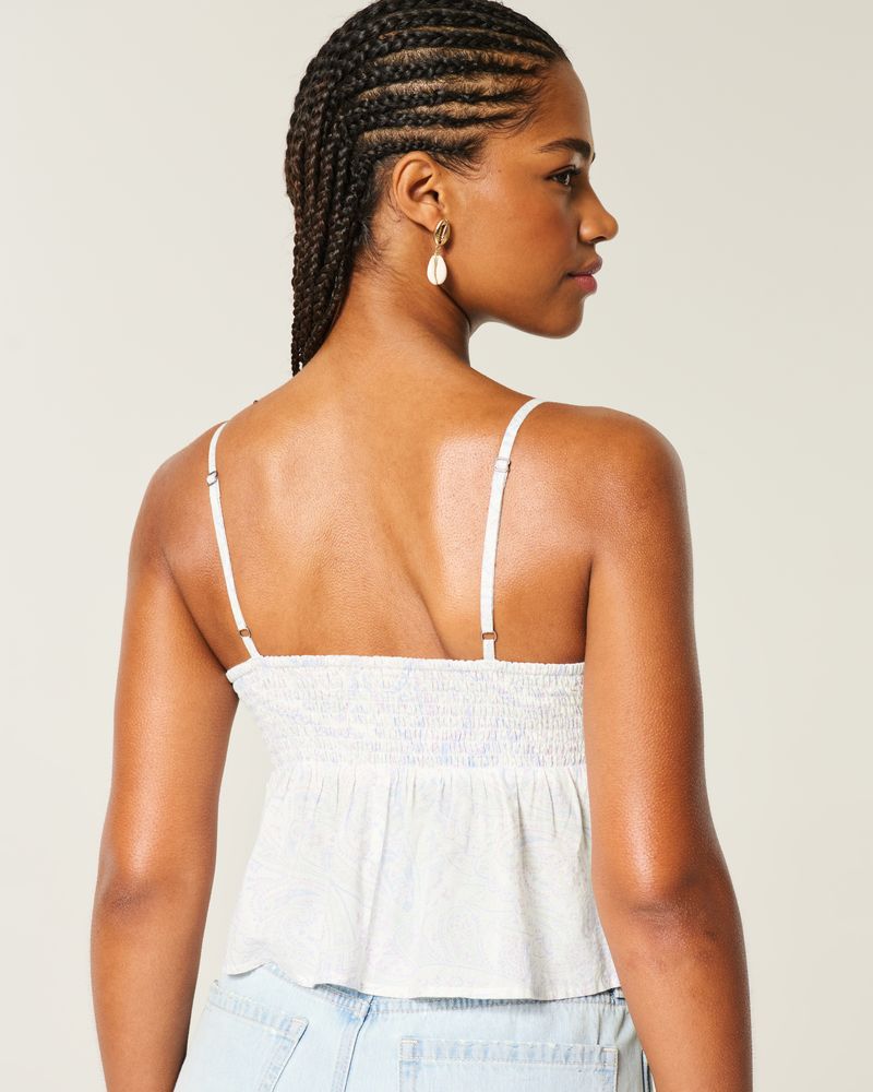 This pretty top looks amazing dressed up or down! Cute babydoll silhouette, all-over paisley pattern, soft smocked back, built-in pads, adjustable straps. Easy Fit. Imported.