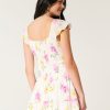 Pretty and super soft, this dress features ruched detailing through the bust, flutter sleeves and center button details. Flowy skirt, hidden shorts. Imported.