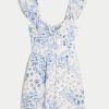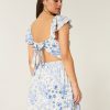 Pretty and super soft, this dress features ruched detailing through the bust, a front tie detail and tiered flutter sleeves. Bra-covering back detail, flowy skirt, hidden shorts, pockets. Imported.