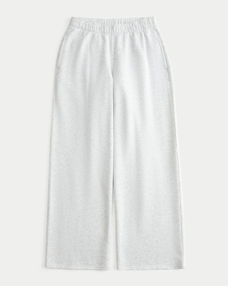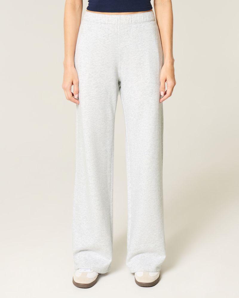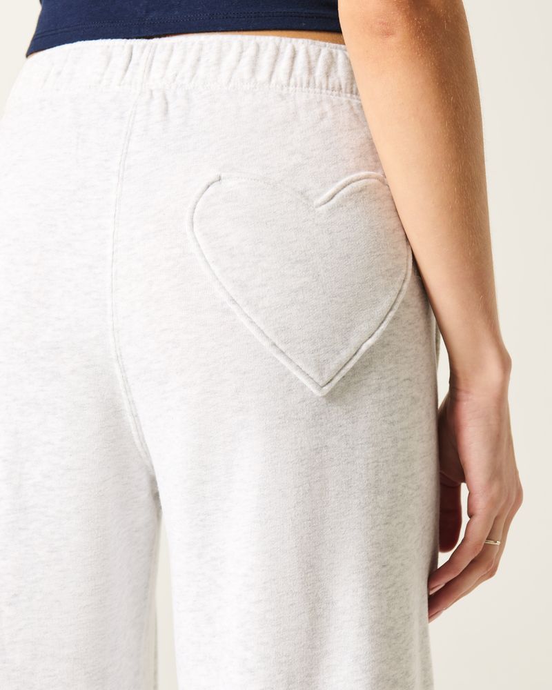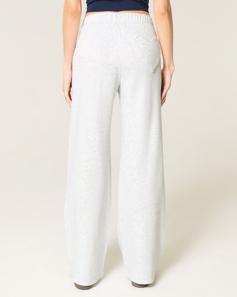 Super soft fleece sweatpants designed with a wide leg and banded waist. Heart-shaped back pocket. Imported.