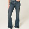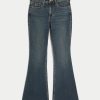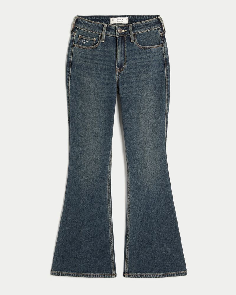 Comfortable denim jeans in a dark wash, designed with a flattering high-rise waist, slim leg and flared hem. Fading, whiskering, Vintage Stretch denim, cute embroidered floral details at the right coin pocket and back. Imported.