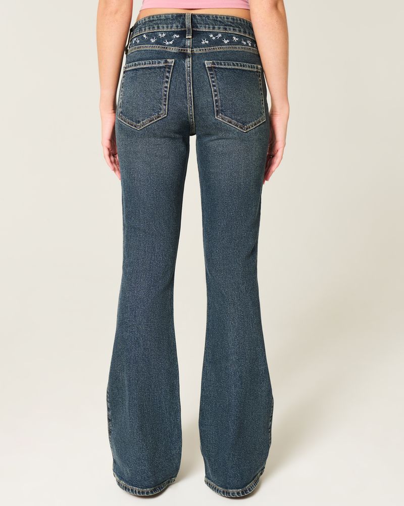 High-Rise Dark Wash Embroidered Florals Flare Jeans