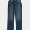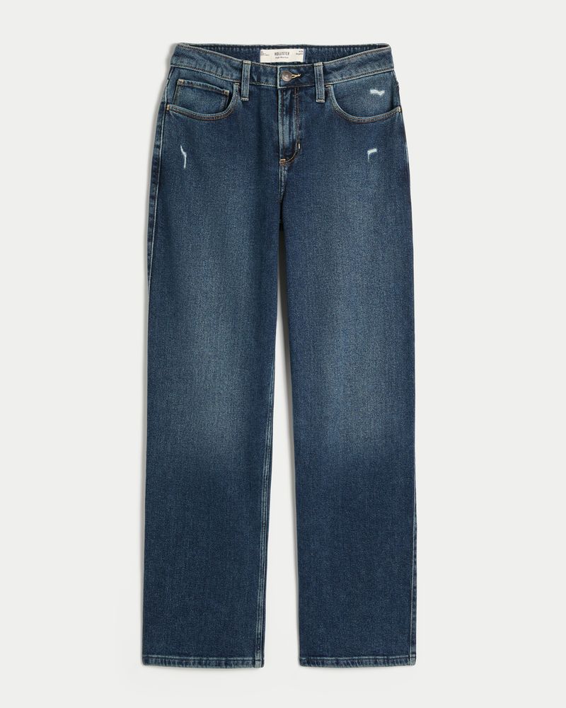 Comfortable denim jeans designed with a flattering high-rise waist and relaxed leg. Fading, distressed details. Imported.