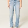 Comfortable jeans made with Vintage Stretch denim in a light wash, designed with a flattering high-rise waist and straight leg. Fading, whiskering, distressed details. Imported.