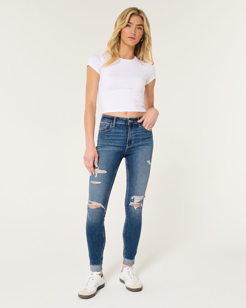 High-Rise Ripped Medium Wash Super Skinny Jeans