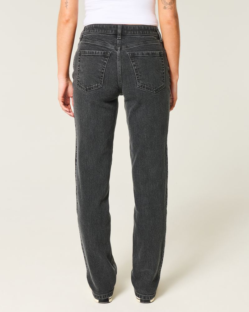 Ultra-comfortable jeans in washed black denim, designed with a flattering high-rise waist and straight leg. Vintage Stretch denim for a comfortable fit. Imported.