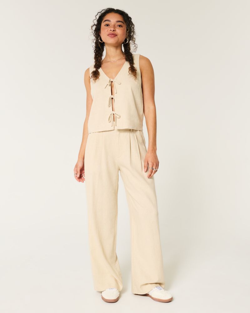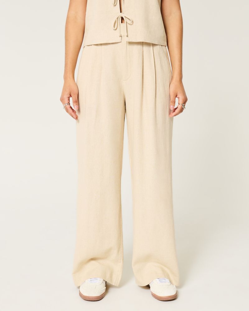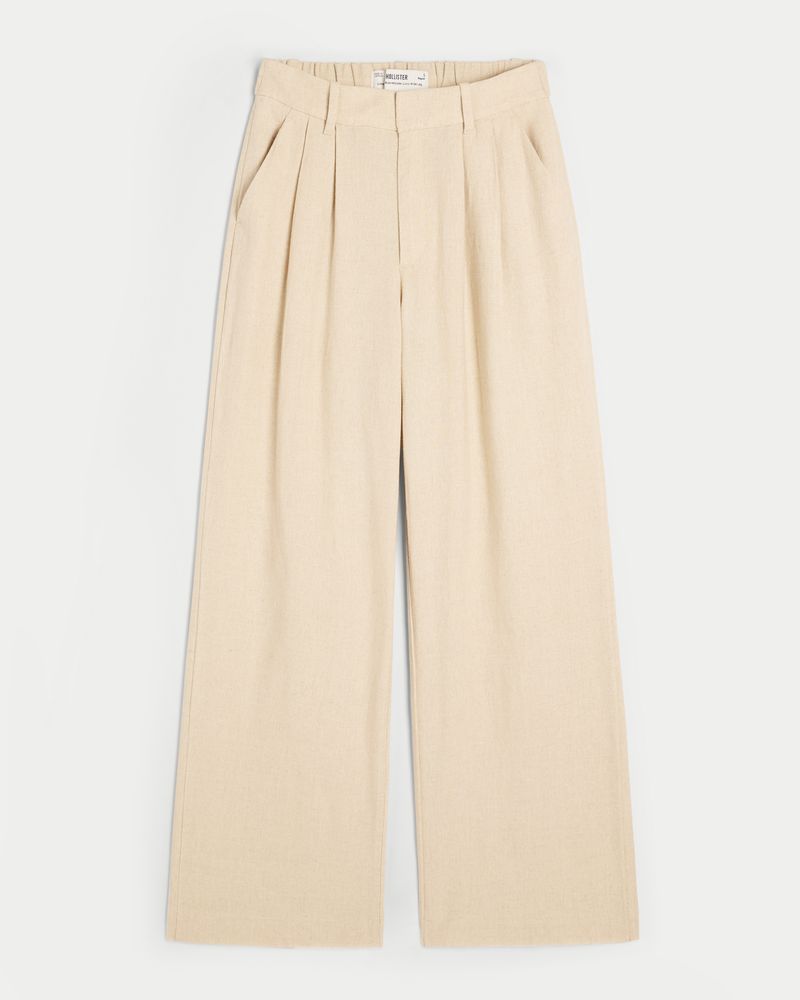 Your new fave pants are designed with a flattering ultra high-rise waist and wide-leg silhouette. Pleated waist for a classic tailored look, pockets. Made with a soft linen blend. Imported.
