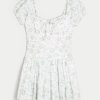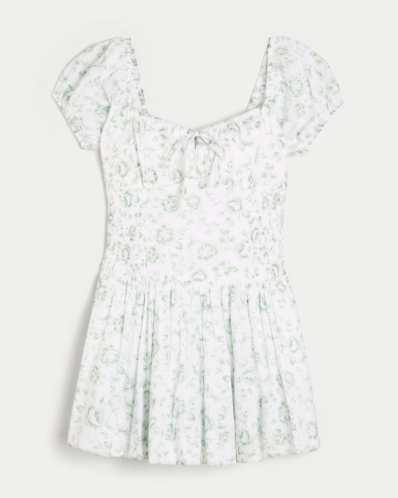 A super soft and pretty mini dress with a bubble hem, short sleeves and drop waist. Smocked sides, cap sleeves, pockets, built-in woven shorts, center tie detail at neckline, ruched detailing through the bust. Imported.