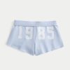 Super soft mini fleece shorts with a sporty lace number graphic at the back. Drawstring waist. Imported.