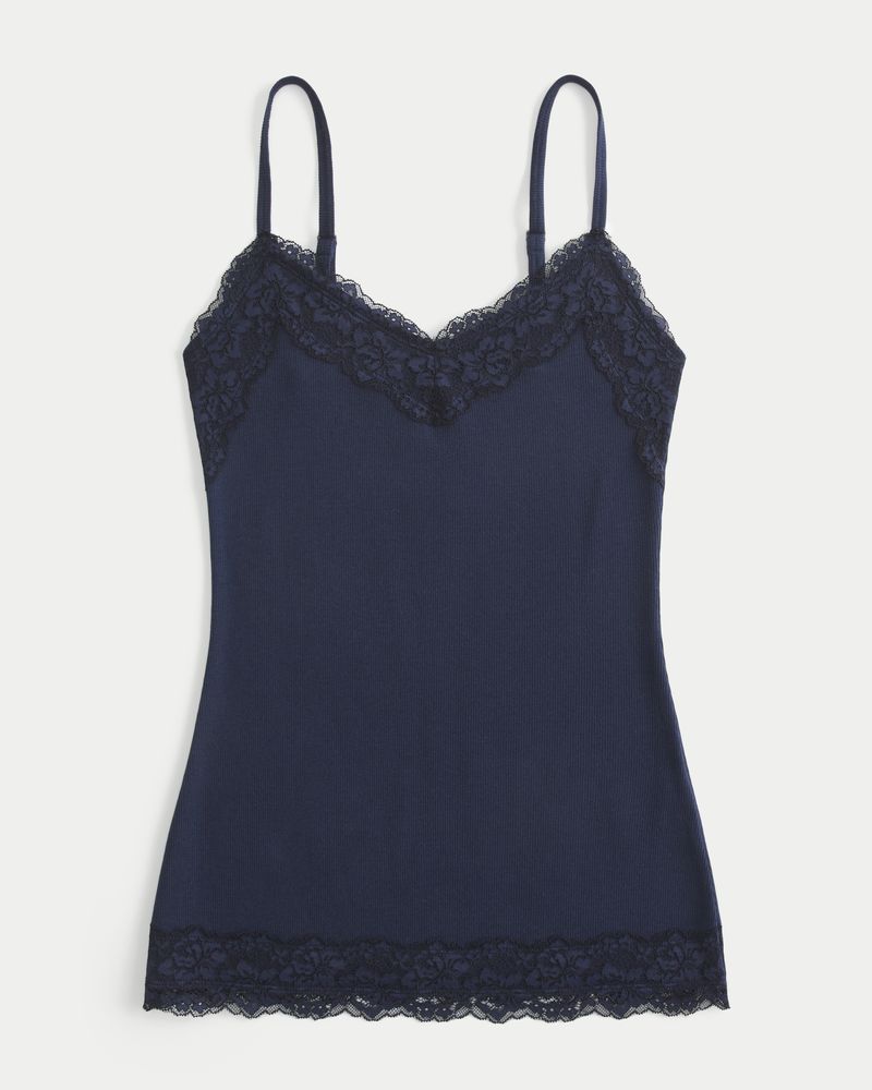 Pretty and super soft, this Y2K-inspired cami features lace trim at the neckline and hem. Adjustable straps. Slim Fit. Imported.