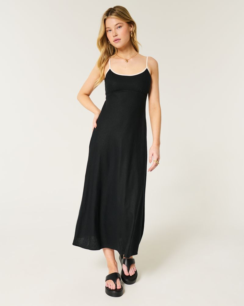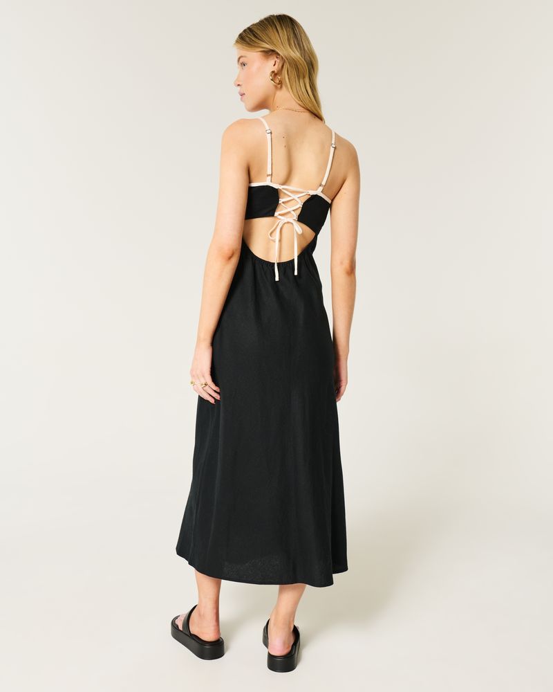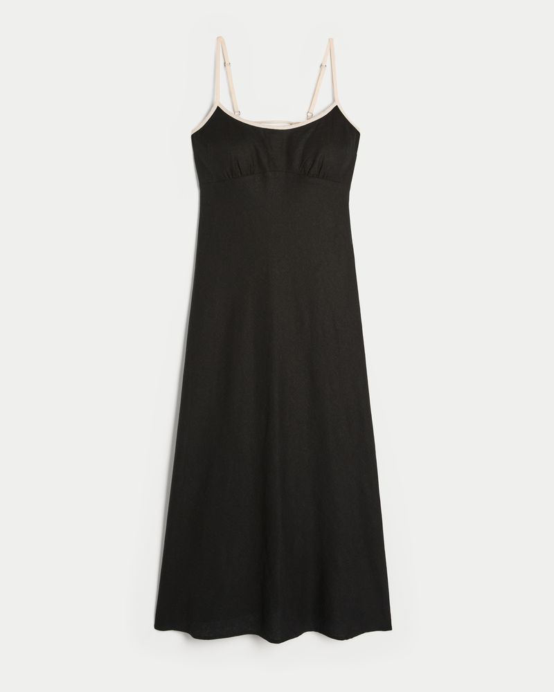 Women’s Linen-Blend Open-Back Slip Midi Dress