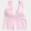 Made with a soft linen blend, this pretty top features an open back with tie closure. Built-in pads, wide straps. Slim Fit. Imported.