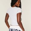 A super soft baby tee designed with a slightly shrunken silhouette, featuring logo graphic embroidery. Crew neckline, short sleeves. Slim Fit. Imported.