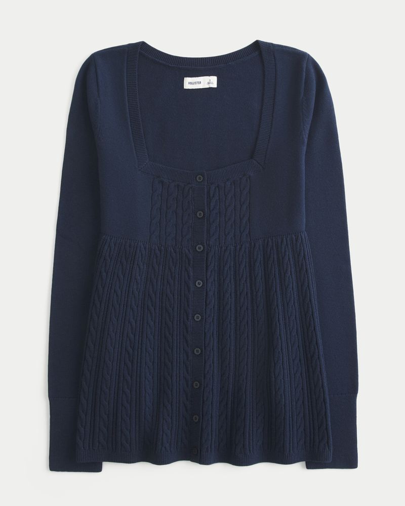 Women’s Long-Sleeve Square-Neck Babydoll Sweater
