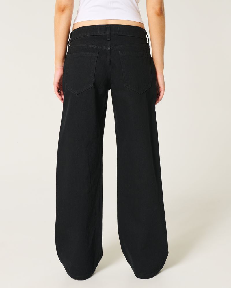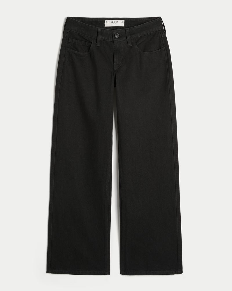Ultra-comfortable denim jeans in black, designed with a low-rise waist and baggy leg. Imported.