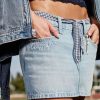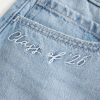 A cute and comfy denim mini skort in a medium wash, designed with a low-rise waist and hidden knit shorts. Featuring 2026 graphic applique with eyelet embroidery at the back pockets and Class of ’26 graphic embroidery at the front. Fading, whiskering. Imported.