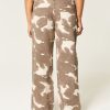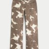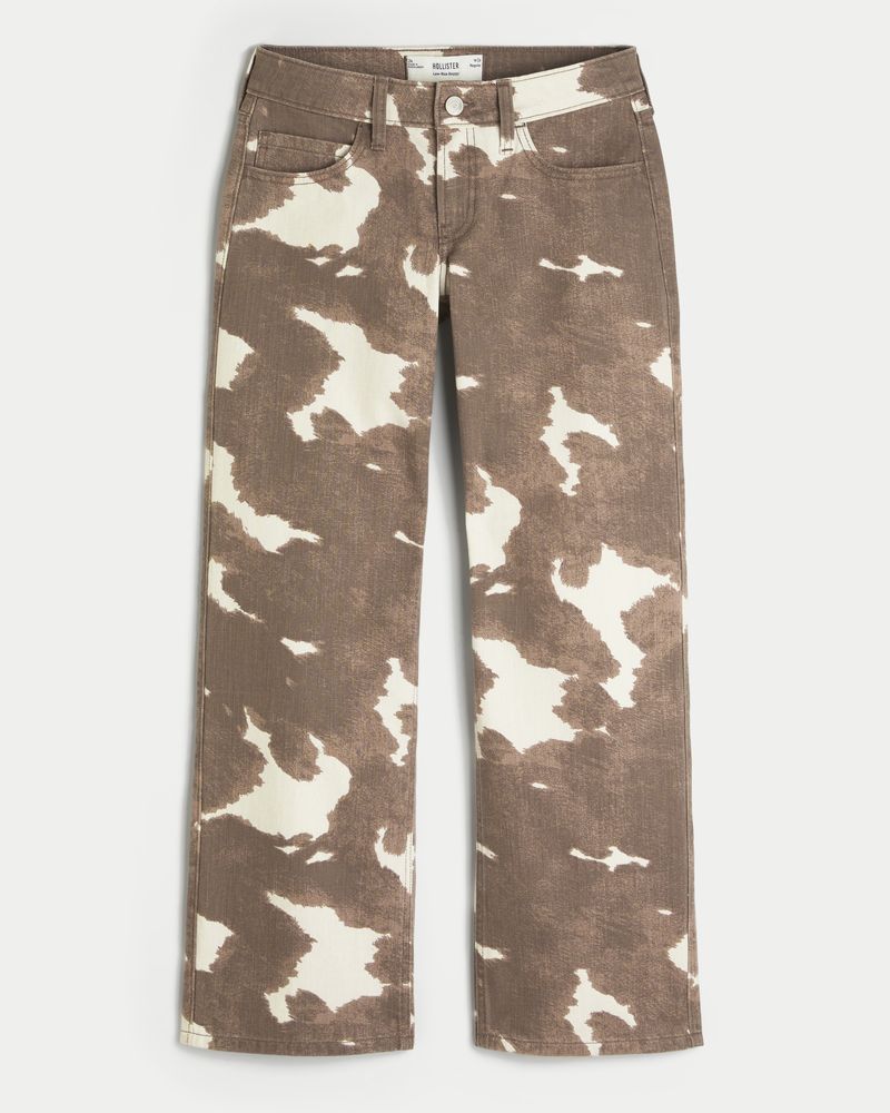 Comfortable denim jeans designed with a low-rise waist and baggy leg. All-over cow print. Imported.
