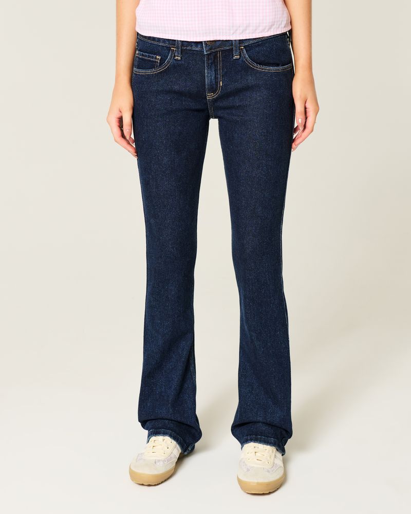 Comfortable denim jeans in a dark wash, designed with a flattering low-rise waist, slim leg and bootcut hem. Vintage Stretch denim. Imported.