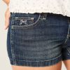 Low-Rise Dark Wash Embroidered Denim Shortie Shorts