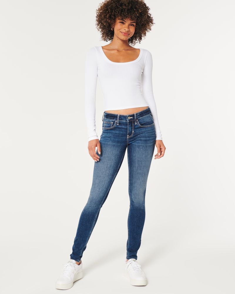Designed in our signature slim fit, these super skinny jeans feature a flattering low-rise waist in a dark wash. Made with our ultra-comfortable Classic Stretch denim. Fading and whiskering. Imported.