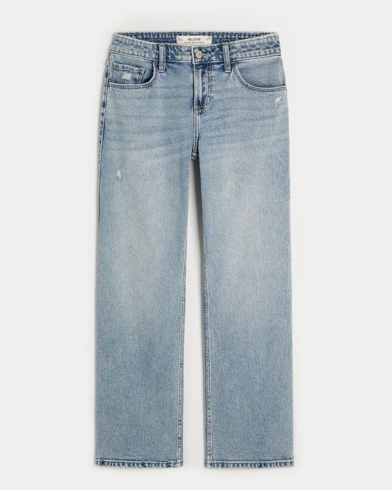 Women’s Low-Rise Distressed Medium Wash Relaxed Straight Jeans