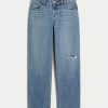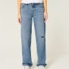 Comfortable denim jeans designed with a low-rise waist and loose leg. Fading, whiskering, ripped detailing, medium wash. Imported.