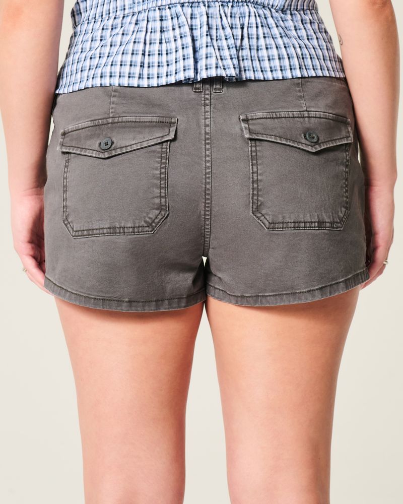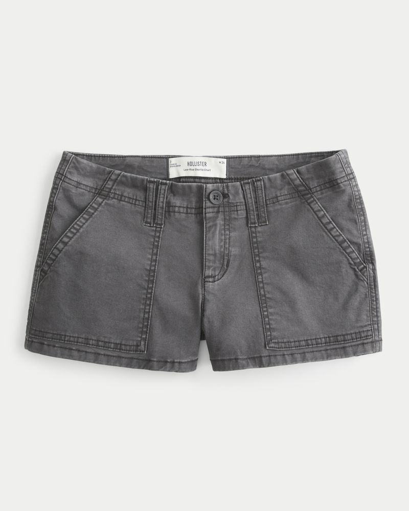 Cute shortie shorts in twill, designed with a low-rise waist. Pockets. Imported.