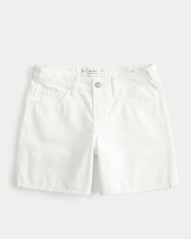 Low-Rise White Adjustable Waistband Baggy Jort