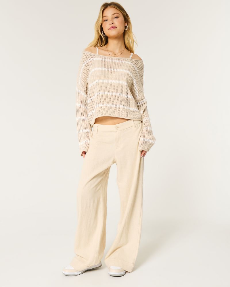 Super soft and comfortable pants designed with a low-rise waist and wide leg. Cuffed hems. Imported.