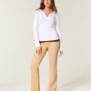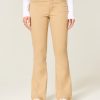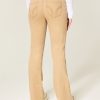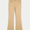 Comfortable denim jeans designed with a mid-rise waist and boot hem. Khaki color. Imported.
