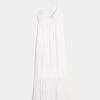 Super soft, flowy and fun, this dress features halter straps, pockets and a back tie detail. Removable pads, tiered hem, maxi length. Imported.