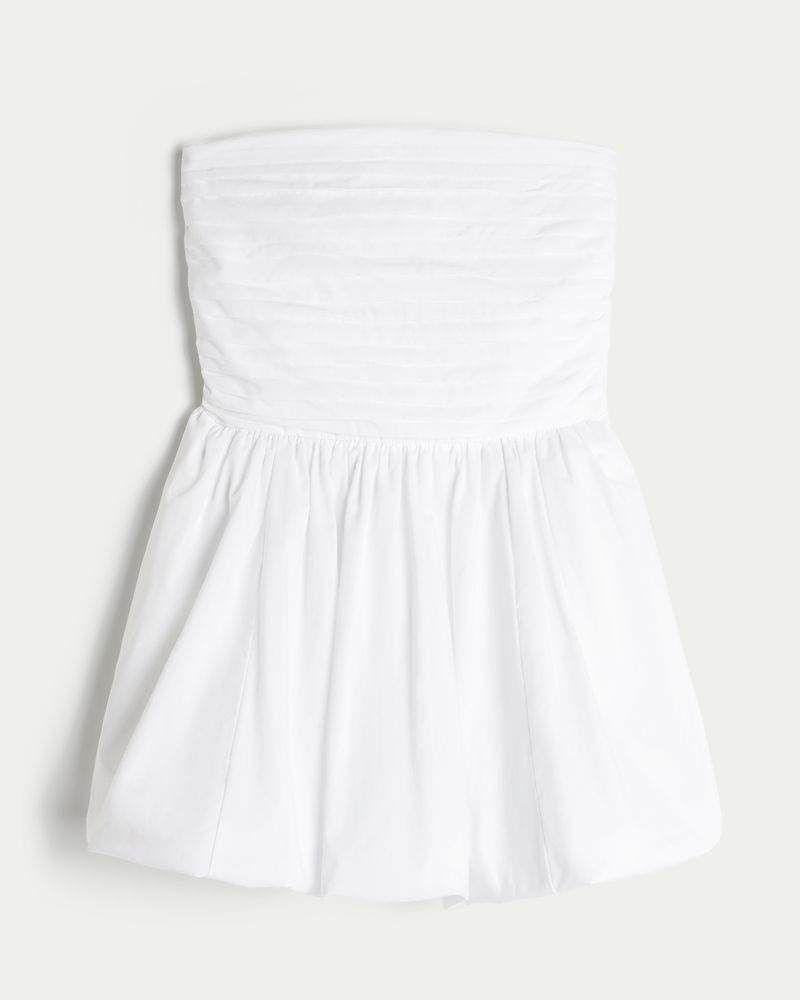 Your new favorite dress features removable pads, hidden bathroom-friendly shorts, pockets and an open back detail. Rushed detailing through the bodice, bubble skirt. Removable straps. Imported.