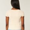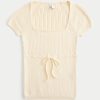 Cute and super soft, this short-sleeve sweater features ribbed texture and a tie detail through the waist. Square neckline. Imported.