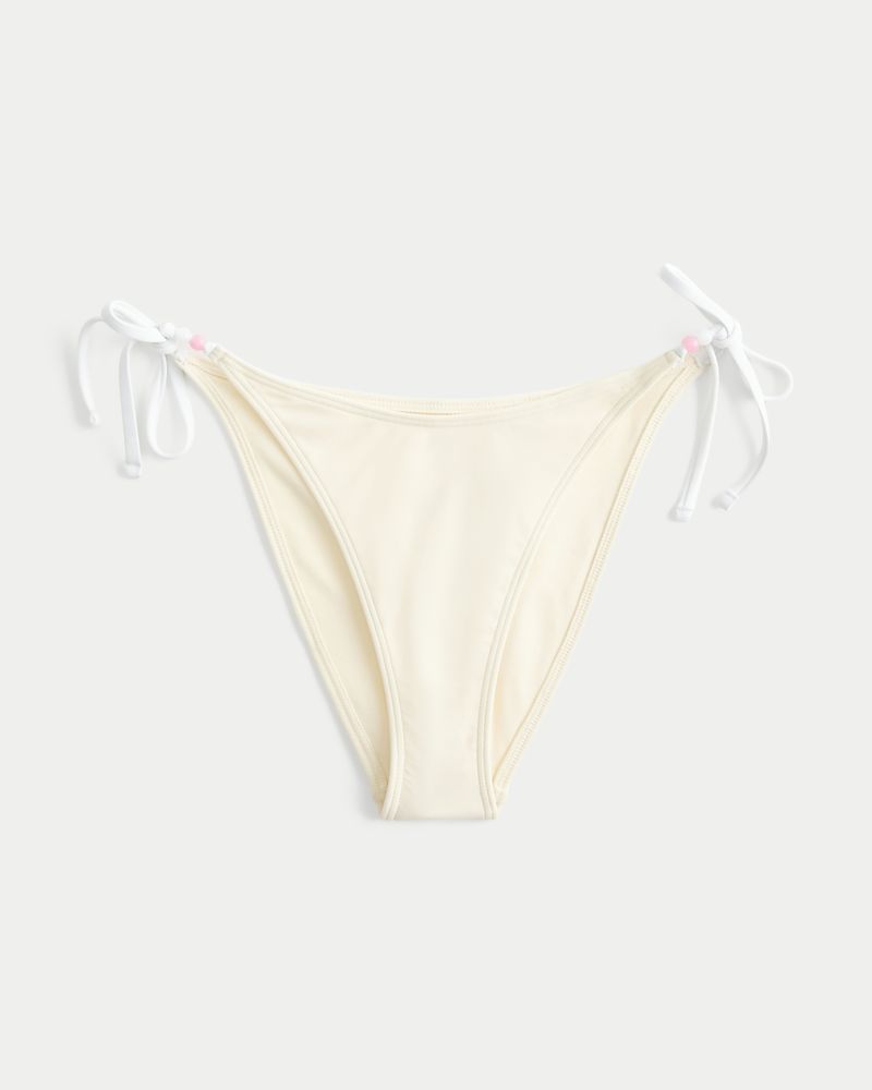 A cute bikini bottom featuring side ties with bead details. Cheeky coverage. Imported.