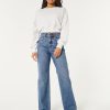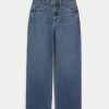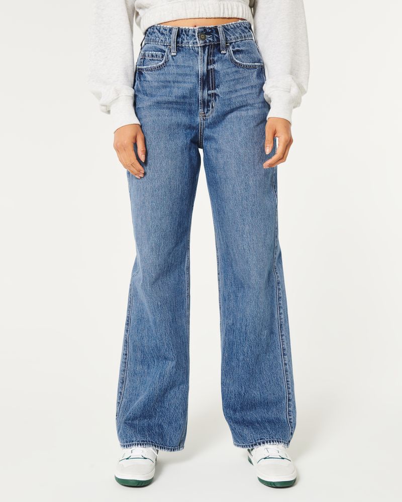 Your new favorite jeans are designed with an ultra high-rise waist and comfortable baggy leg. Medium wash denim with fading and whiskering. Imported.