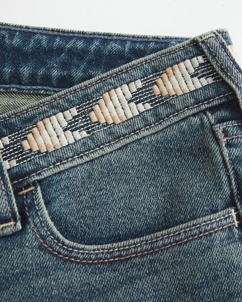 Ultra Low-Rise Medium Wash Embroidered Flare Jeans