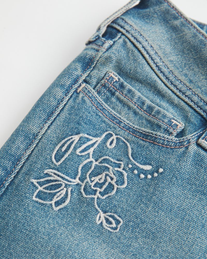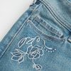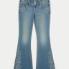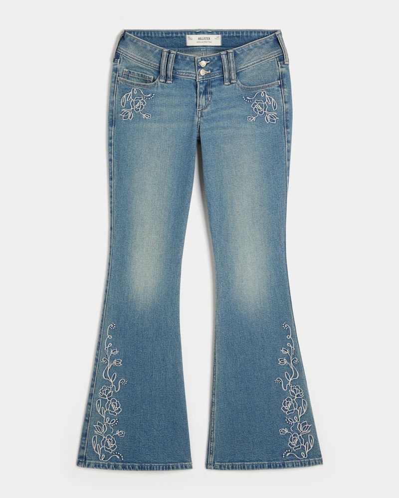Ultra Low-Rise Medium Wash Floral Embroidery Flare Jeans