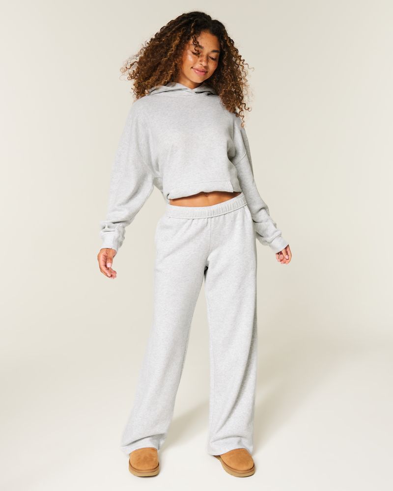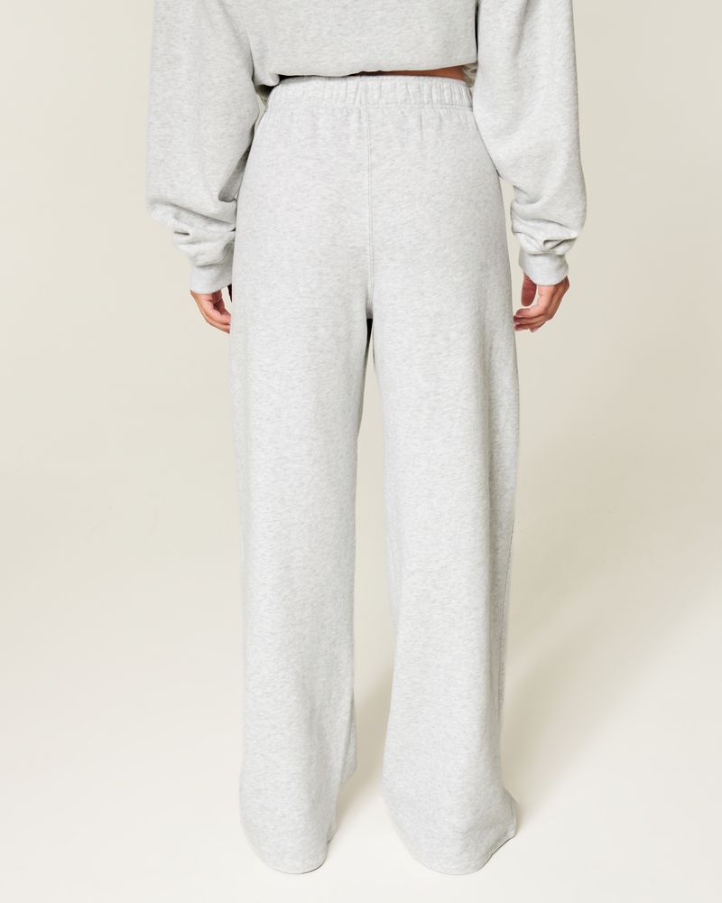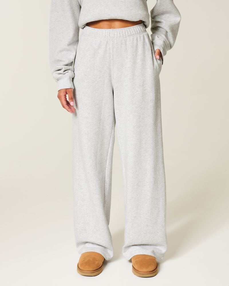 Super soft fleece sweatpants designed with a wide leg and banded waist. Pockets. Imported.